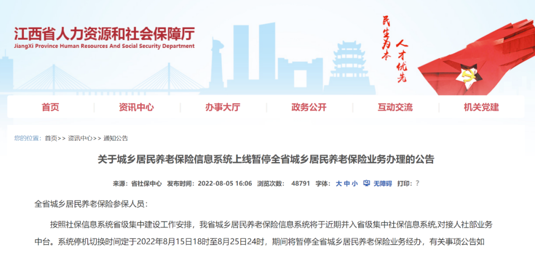 業(yè)務中臺。系統(tǒng)停機切換時間定于2022年8月15日18時至8月25日24時,期間將暫停全省城鄉(xiāng)居民養(yǎng)老保險業(yè)務經辦,有關事項